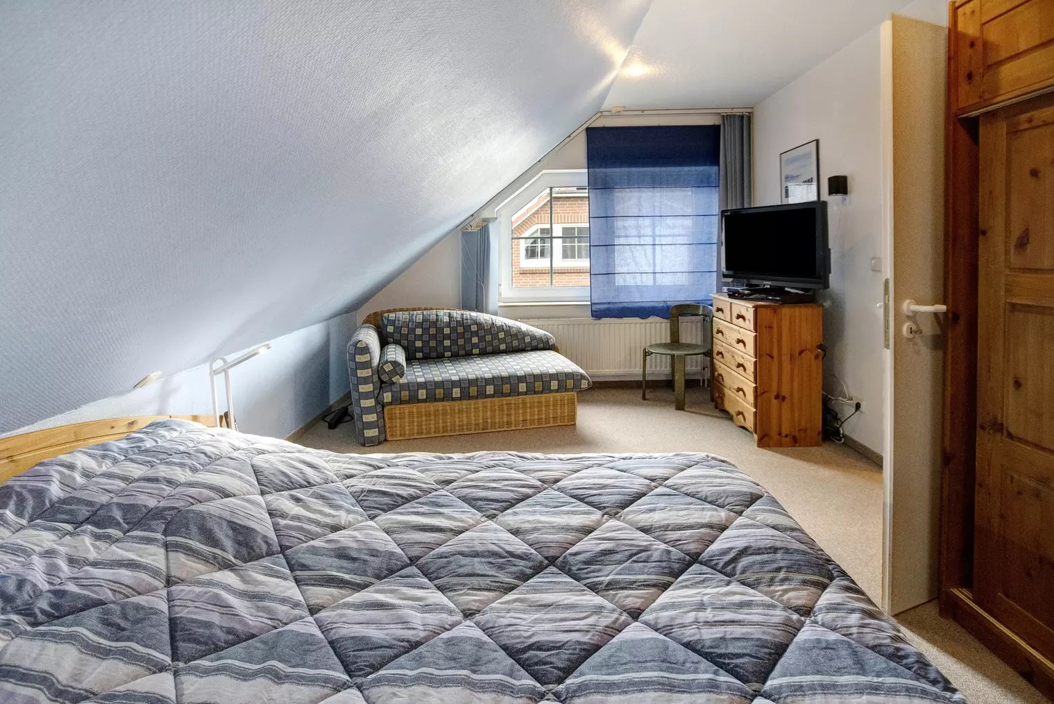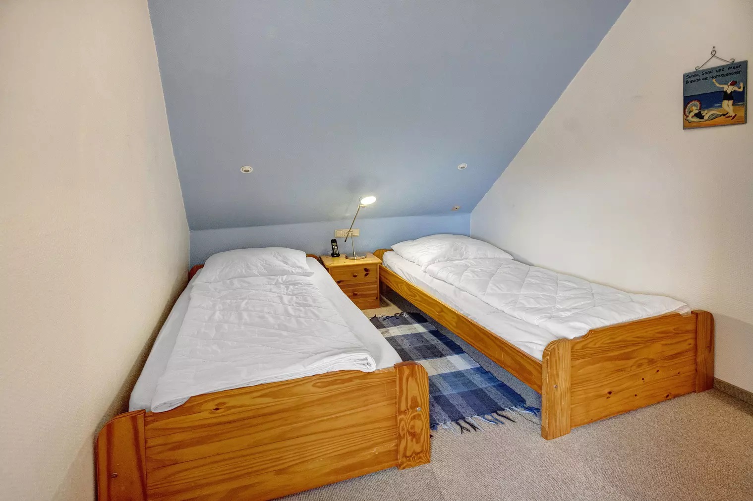 Schlafzimmer 1 hat 1 Doppelbett. Schlafzimmer 2 hat 2 Einzelbetten.