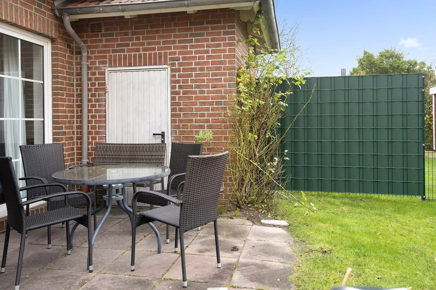 Das Highlight dieser Unterkunft ist der private Außenbereich mit einem Garten, Gartenmöbeln, Markise, Terrasse und einem Grill.